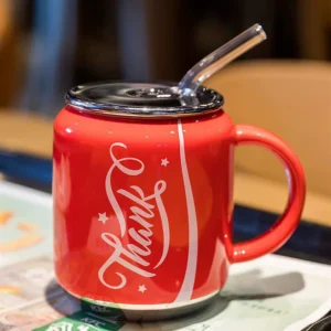 Ly sứ Thank kèm ống hút thủy tinh