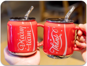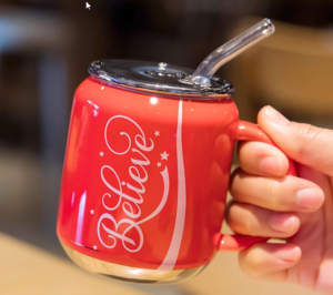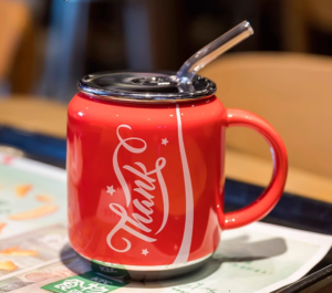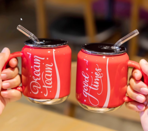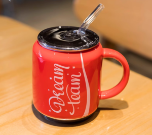 - Ly có thiết kế sáng tạo và thú vị với hình dáng giống lon nước ngọt, kèm nắp ly màu bạc, đầy tính thẩm mỹ.