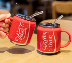 - Thân ly và nắp ly đều được làm từ sứ cao cấp.